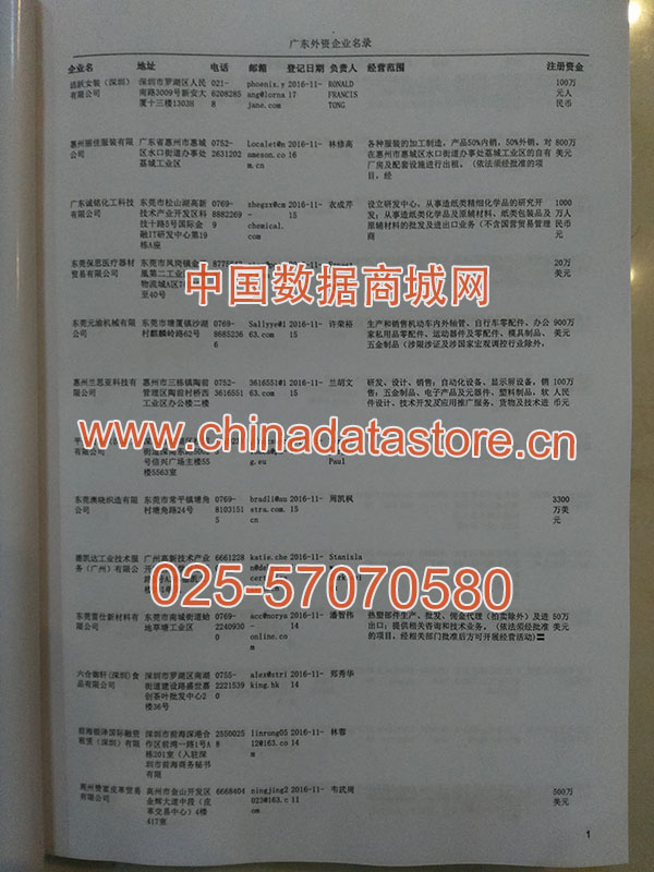 廣東外資企業(yè)黃頁經(jīng)過人工多次整理更新以及去重處理,提供開放的Excel等格式具有開放性特點,可以自由地添加、刪除、更改,導入導出到電腦中保存等操作,還可以輕松打印