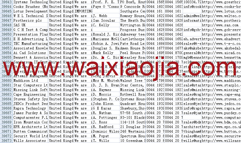 英國采購商名單數(shù)據(jù)為Excel格式,信息可任意修改、復制、打印、導出及導入到傳真、郵件群發(fā)等軟件中,無任何限制。