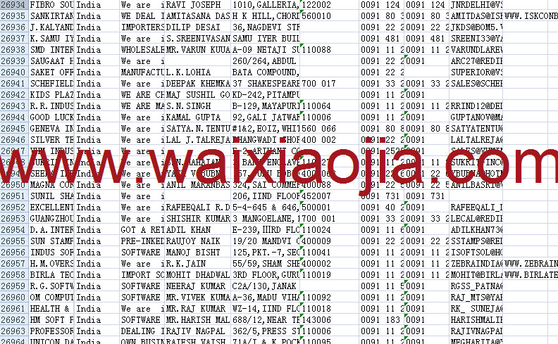印度采購(gòu)商名單數(shù)據(jù)為Excel格式,信息可任意修改、復(fù)制、打印、導(dǎo)出及導(dǎo)入到傳真、郵件群發(fā)等軟件中,無(wú)任何限制。