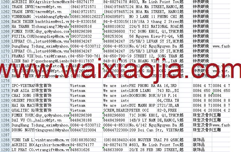越南采購商名單數(shù)據(jù)為Excel格式,信息可任意修改、復(fù)制、打印、導(dǎo)出及導(dǎo)入到傳真、郵件群發(fā)等軟件中,無任何限制。