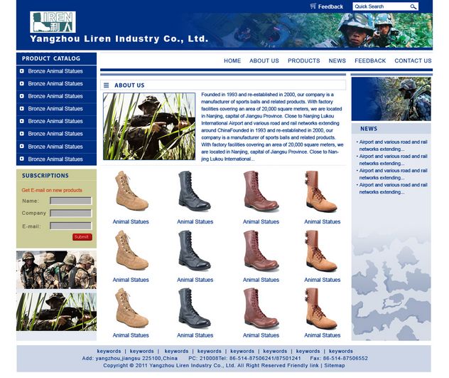 外貿(mào)服務網(wǎng)建站系統(tǒng)功能:整站html靜態(tài)頁面+可編輯頁面標題/關鍵詞/描述標簽+方0.42便搜索引擎收入易于左側自然排名靠前頁面設計結構+整站頁面文字、圖片基本上都可以編輯+站內(nèi)搜索功能+許可郵件收集功能+訪客詢盤功能+自定義網(wǎng)站欄目+網(wǎng)站流量分析+授權VIP訪客訪問保密產(chǎn)品信息等